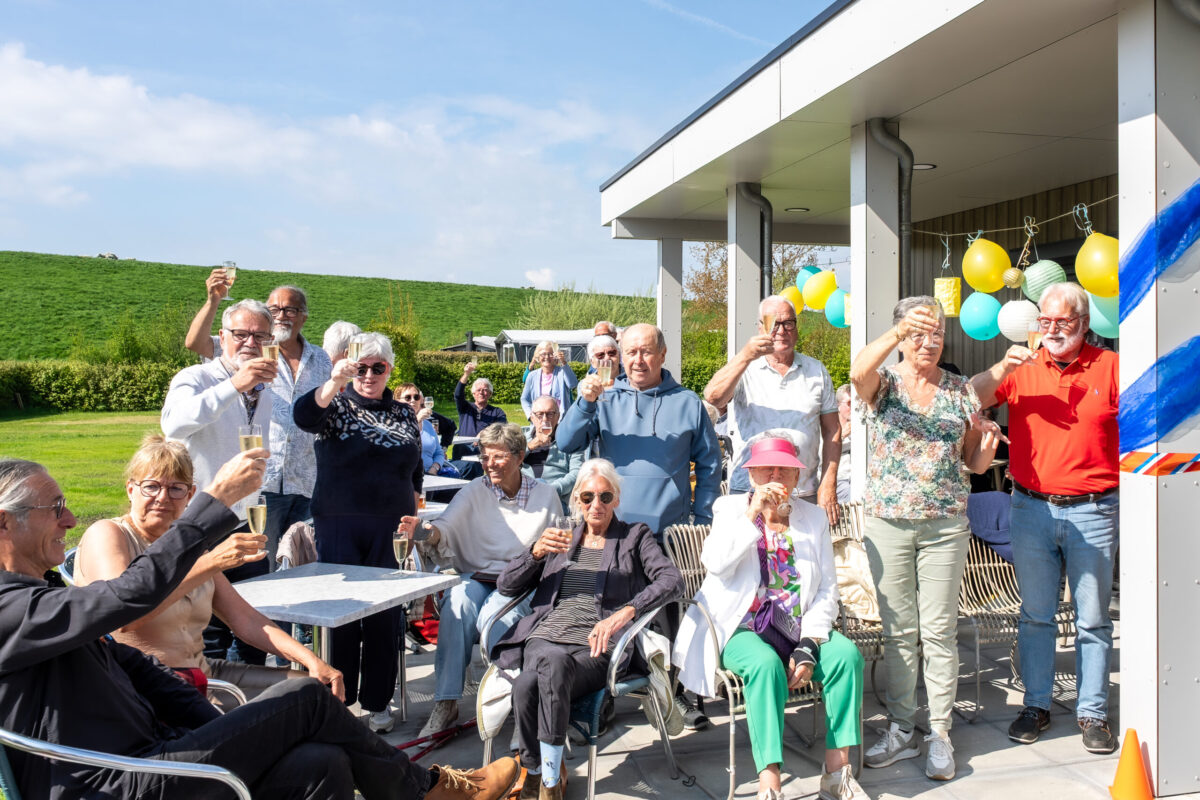 Na een paar jaar van voorbereidingen is de nieuwbouw inmiddels een feit. TROTS zijn is wel het juiste woord. Na 50 jaar is dit een belangrijke stap om de camping ” De Schoone Waardin” een mooie toekomst te geven. Het nieuwe duurzame gebouw, met zonnepanelen en zonder gasaansluiting, staat vrijwel op de dezelfde plaats van de vorige voorziening. De “Herberg De Schoone Waardin” heeft een grotere centrale ruimte met een groot terras en voorzien van een vaste overkapping. Met de nieuwe accomodatie is de gehele camping rolstoelvriendelijk met een sanitaire voorziening voor minderinvaliden, welke ook als babyroom is te gebruiken. De nieuwe duurzame accommodatie is inmiddels opgeleverd en de leden hebben, in en rondom het gebouw, alles op orde gemaakt om de gasten te ontvangen vanaf 2 mei 2025 op De Schoone Waardin. Ons spiksplinternieuwe gebouw is door de leden mogelijk gemaakt met een gedreven bestuur die de droom werkelijkheid hebben laten worden. Een gebouw plaatsten is één ding, maar alle voorbereidingen en de inrichting is een enorm pak werk. Chapeau aan ons bestuur en leden is dan ook op zijn plaats. Op Tweede Paasdag heeft de officiële opening plaats gevonden met het doorknippen van het toegangslint. Onze trotse voorzitter Willem Reijnders kreeg hierbij hulp van een naamgenoot Willem Alexander, welke plotseling ten tonele verscheen met Maxima. Echter Marjolein Fabertje probeerde het uitdelen van lintjes aan de harde werkers nog te verstoren, maar dit mocht niet helpen. Hierna werd er een toast uitgebracht door de leden en is de “Herberg De Schoone Waardin” definitief opengesteld. |